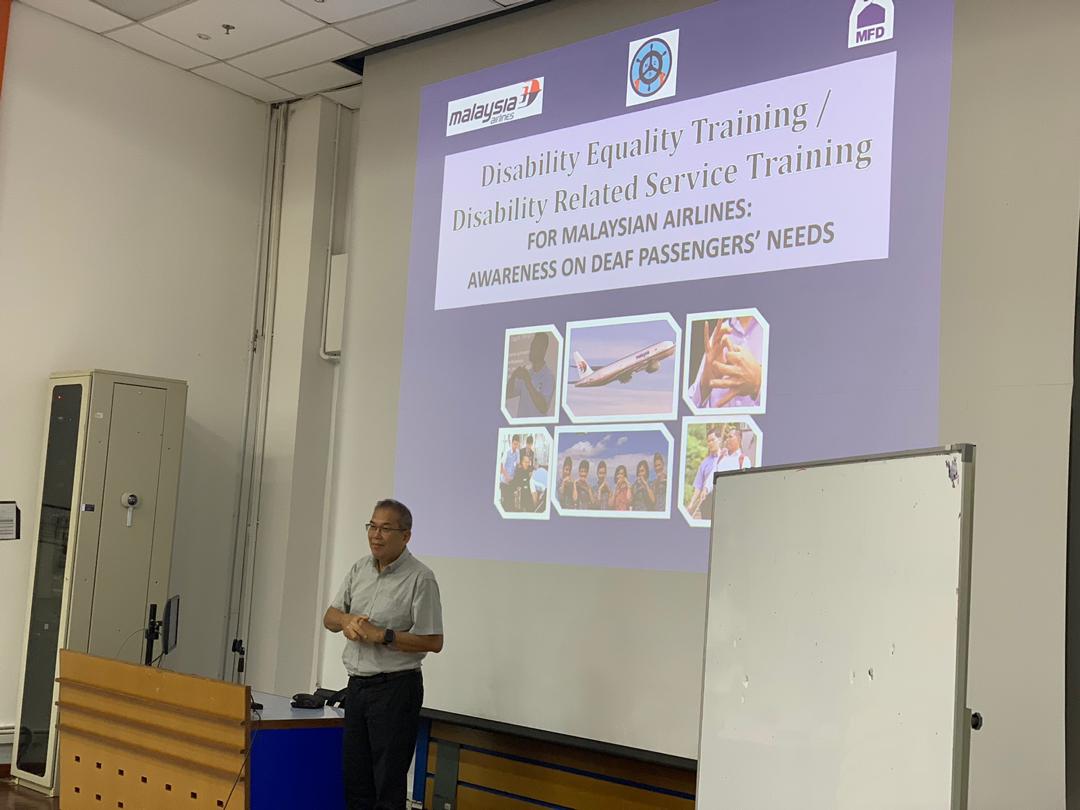 Mr. Mohamad Sazali Shaari, who is the President of Malaysian Confederation of the Disabled and the Vice Chairman of ASEAN Disability Forum, shared insights on how to understand a hearing-impaired person, communication methods, as well as common experiences faced by the hearing-impaired people. He was assisted by Madam Zaidah who wonderfully interpreted the sign languages used by Mr. Sazali.
