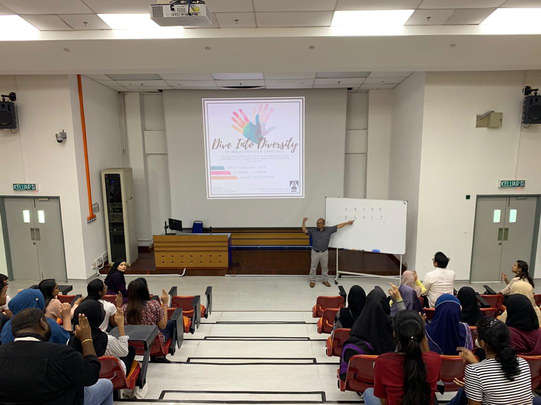On 19 February 2019, the final year Business Management students from Faculty of Management (FOM) organised an event entitled “Dive into Diversity with Malaysian Sign Language” with the support of the Malaysian Federation of the Deaf (MDF). About 82 students attended the event at the Multipurpose Hall, Cyberjaya. The event aimed to spread awareness in embracing diversity among MMU students by exploring the Malaysian sign language.