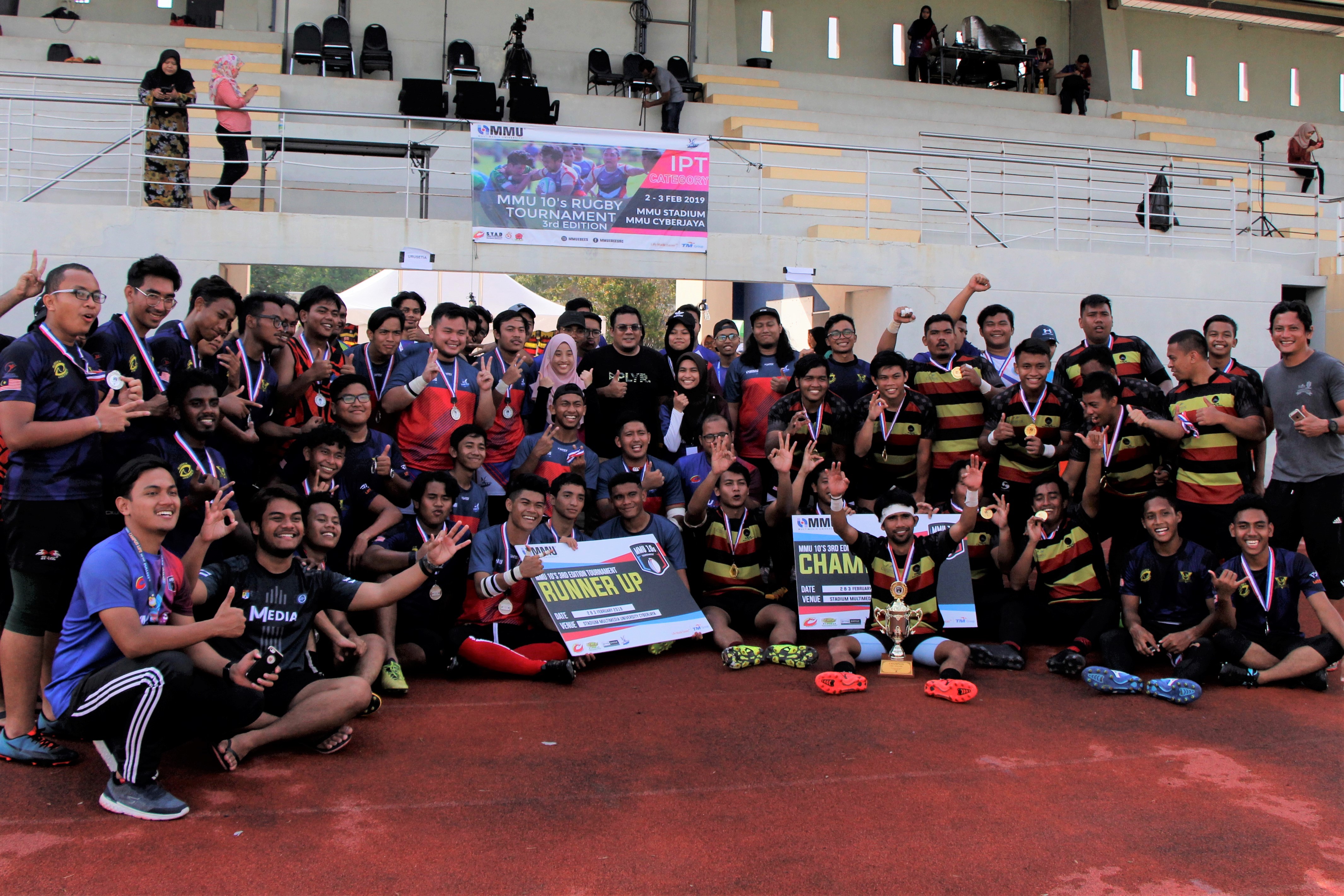 The MMU EBees rugby team had successfully organised a rugby tournament at the Higher Education Institution (IPT) level. Held over two days, from 2 to 3 February 2019 at MMU Stadium, Cyberjaya, the tournament was known as the MMU10’s 3rd Rugby Championship.