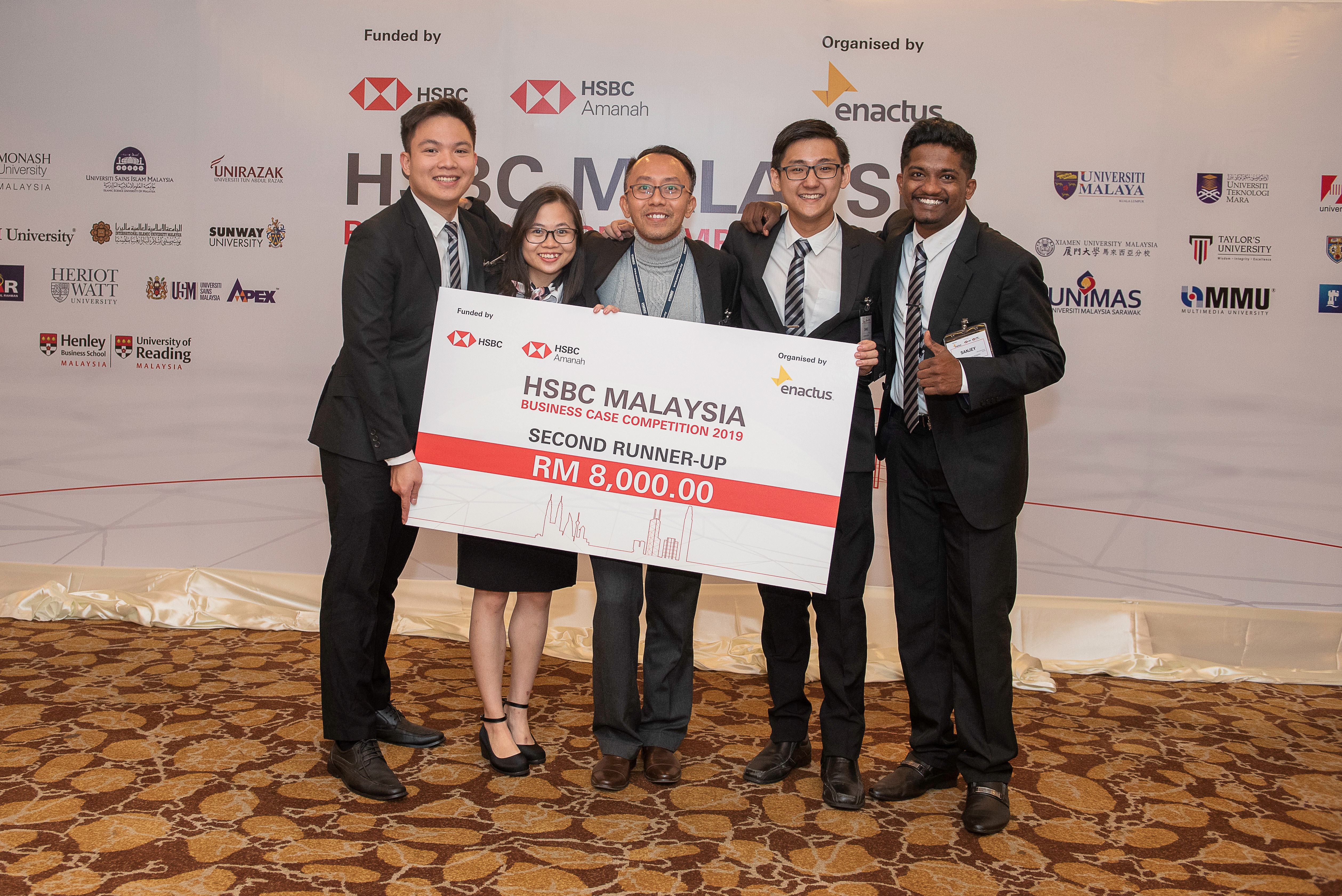 A team of students from Faculty of Business from Multimedia University (MMU) won second runner-up in HSBC Malaysia Business Case Competition 2019. Thai Khye Wayn, Khoo Nee Yen, Daniel Fong Kah Zhen and Sanjey Kumar competed with 21 other teams from various private and public universities in the finals on 27 March 2019 in Hotel Istana Kuala Lumpur.