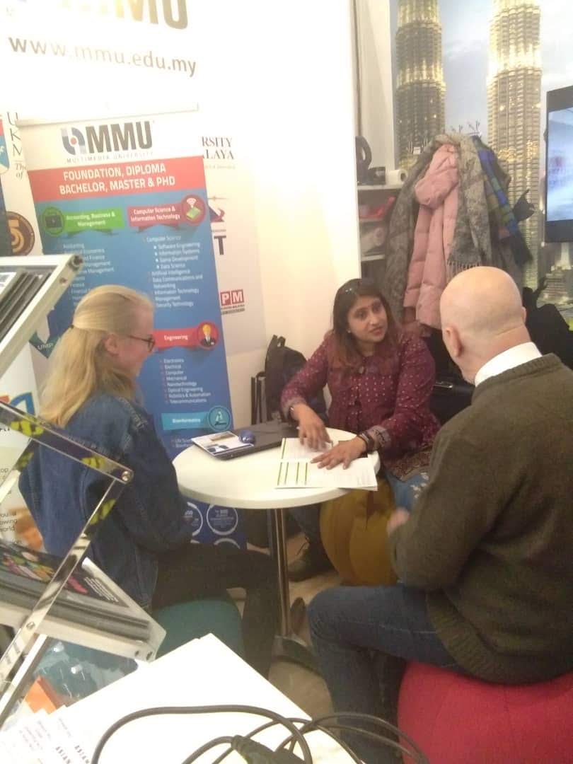 The trade fair consist of the following segments; pre-school education, primary and high schools, universities, new technologies, training and qualification, ministries, institutions and organisations. MMU Business School joint the trade fair with the collaboration of Malproc Sdn. Bhd., a company with affiliated offices in Germany and United Kingdom that ventures in construction, event management, consultation and trading of various products in Europe and Asia.