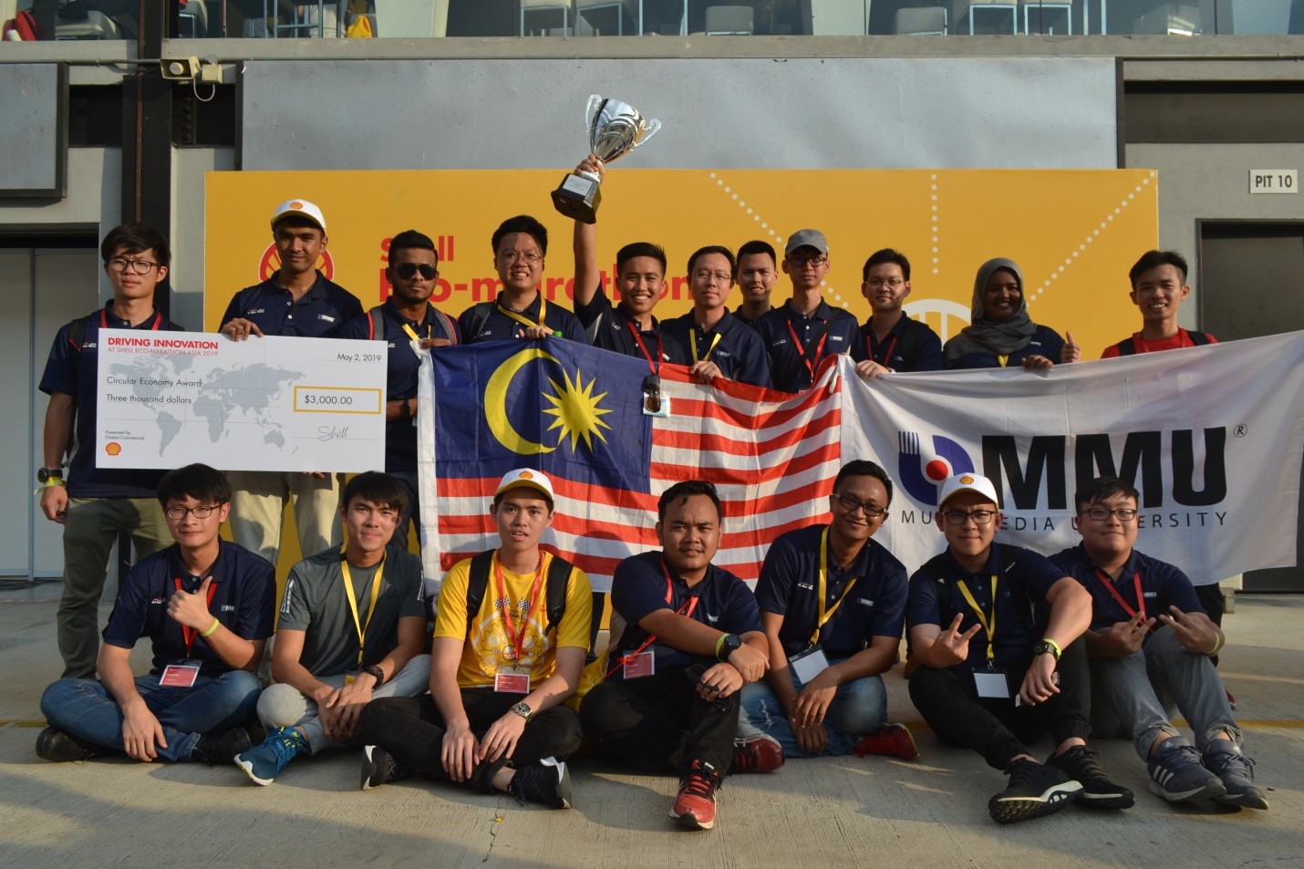 The team had spent enormous efforts and time in developing an innovative and sustainable prototype vehicle with battery-electric as the source of energy. As tradition, MMU Grüne Welt was the first Malaysian team who passed the stringent technical and safety inspection. The team has been awarded with prize money of USD 500 for achieving the best result of 278 km/kWh, which ranked 1st in Malaysia and 6th in Asia among the 23 teams of the battery-electric prototype category. This result has served as the record-breaking mileage achievement for MMU Grüne Welt comparing its performance in previous competition years.