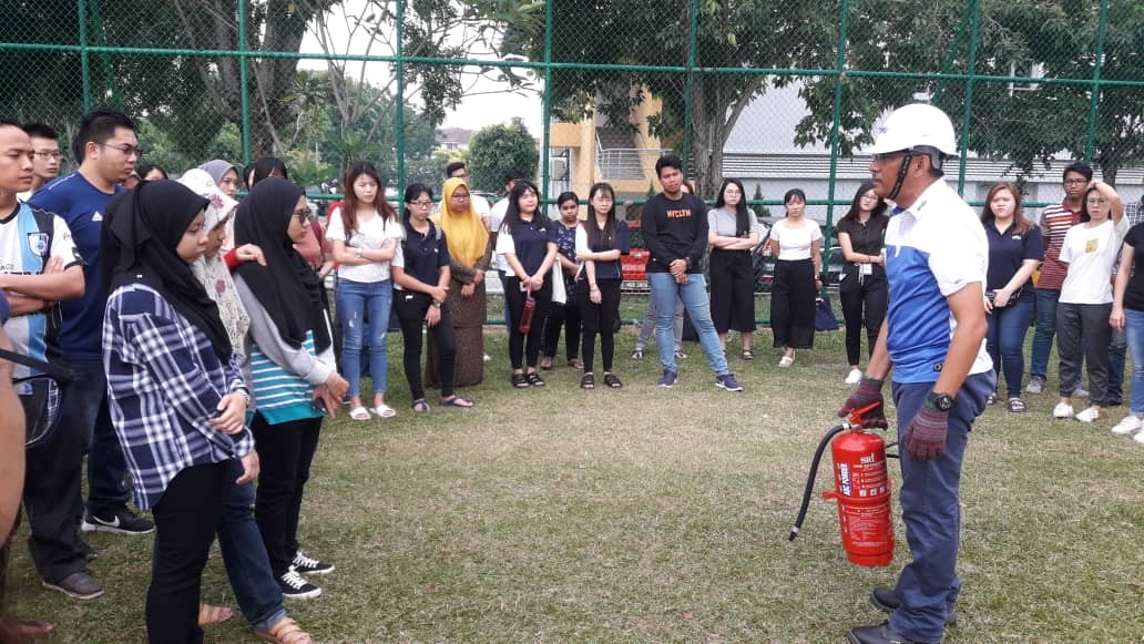 Apart from that, 56 final year students from the Faculty of Business (FOB), who are currently taking BSH3044-Occupational Safety and Health subject attended a short training organised by MMU-Occupational Safety, Health and Environment (OSHE) unit at Melaka campus. The training was conducted by Mr. Joharie Mukhtar, MMU’s own OSHE officer from Cyberjaya and assisted by Ms. Haniza Hashim. The objective of the training was to equip the future graduates towards “hands-on” approach on the usage of fire extinguisher and fire hydrant. This practical activity was another platform for students to gain new insights on what actions to be expected in a real situation.