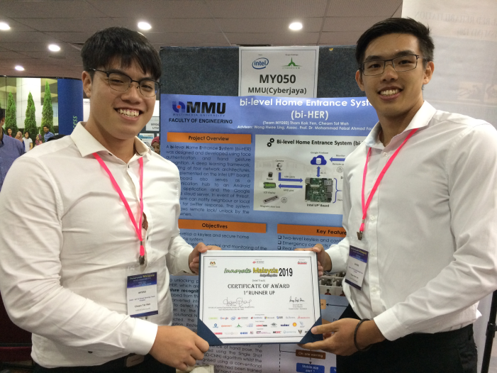 Two students from the Faculty of Engineering (FOE) Tham Kok Yen and Cheam Tat Wah, led by advisors Ms. Wong Hwee Ling and Assoc. Prof. Dr. Mohammad Faizal Ahmad Fauzi, won the first runner-up prize under the Intel technology track at the Innovate Malaysia Design Competition 2019 (IMDC). The competition is an industry-driven undergraduate level design competition led by multinational and local technology companies, supported by the Ministry of Education (MOE) and various professional engineering bodies.