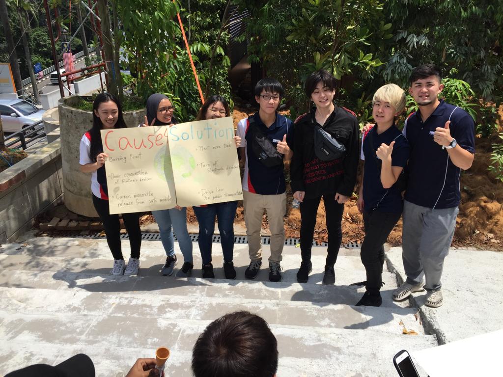 Besides enhancing students’ learning experience through a site visit to Ajinomoto, the students were given the opportunity to appreciate nature by journeying through KL Forest Eco Park.  Upon the arrival at the KL Forest Eco Park, they took the long flight of stairs up the hill until they reached the forest park.  In line with the theme of the hiking activity, which is “Love our mother earth”, the students did a group discussion on topics related to environmental protection at the towering bamboo.   Upon completion of the discussion, they proceeded to KL Tower for the exhibition entitled “Hutan Kita – Journey through our rainforest”.  The visit ended with the students’ presentation.