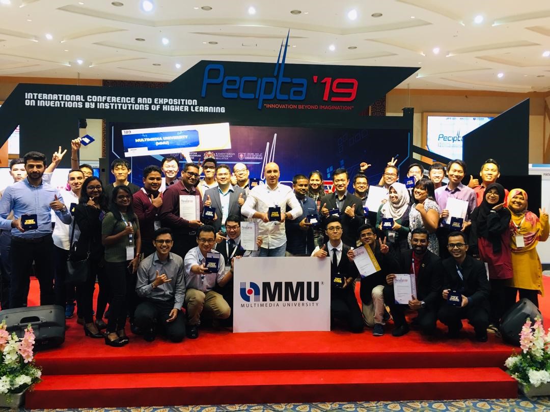 We are proud to announce that MMU researchers bagged six gold awards, seven silver awards, and two bronze awards during the recent ‘Persidangan dan Expo Ciptaan Institusi Pengajian Tinggi Antarabangsa’ (PECIPTA) 2019 at the Universiti Tun Hussein Onn Malaysia (UTHM). This event is a biannual programme organised by the Ministry of Education Malaysia together with its partner institutions since 2001. With its theme “Innovation Beyond Imagination”, this was the 10th installation of the exhibition with more than 450 research products and innovations from public and private institutions, industries, government and private agencies.