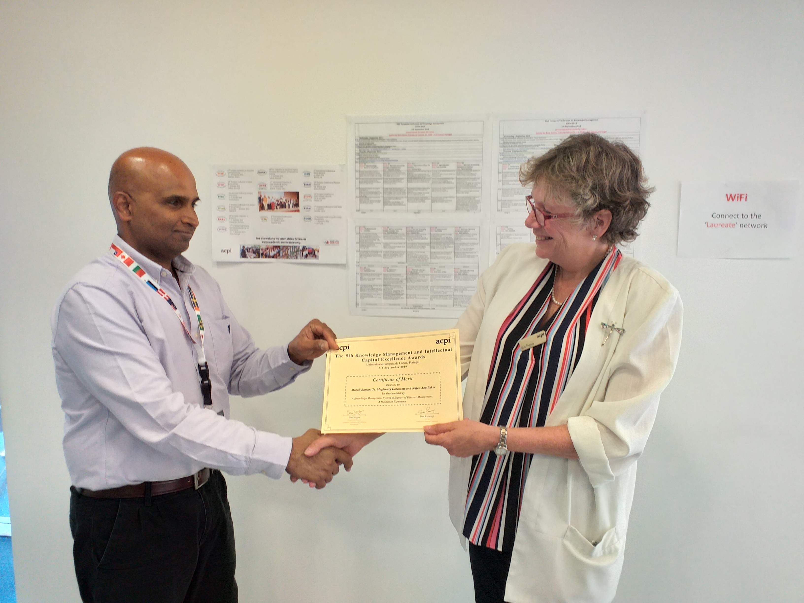 We are proud to announce that Prof. Dr. Murali Raman, Ts. Dr. Magiswary Dorasamy from the Faculty of Management (FOM) and Dr. Najwa Abu Bakar (Smart Cities RI) have made Malaysia and MMU proud when they won the Knowledge Management and Intellectual Capital Excellence Awards at the 20th European Conference on Knowledge Management in Lisbon, Portugal recently. They received the honour for their case study entitled “A Knowledge Management System in Support of Disaster Management: A Malaysian Experience”. The award aims to showcase good examples of high-quality Knowledge Management (KM) and Intellectual Capital (IC) in practice. There were 30 invited cases from all over the world, the MMU team impressed the judges with their presentation and won the award during the conference.