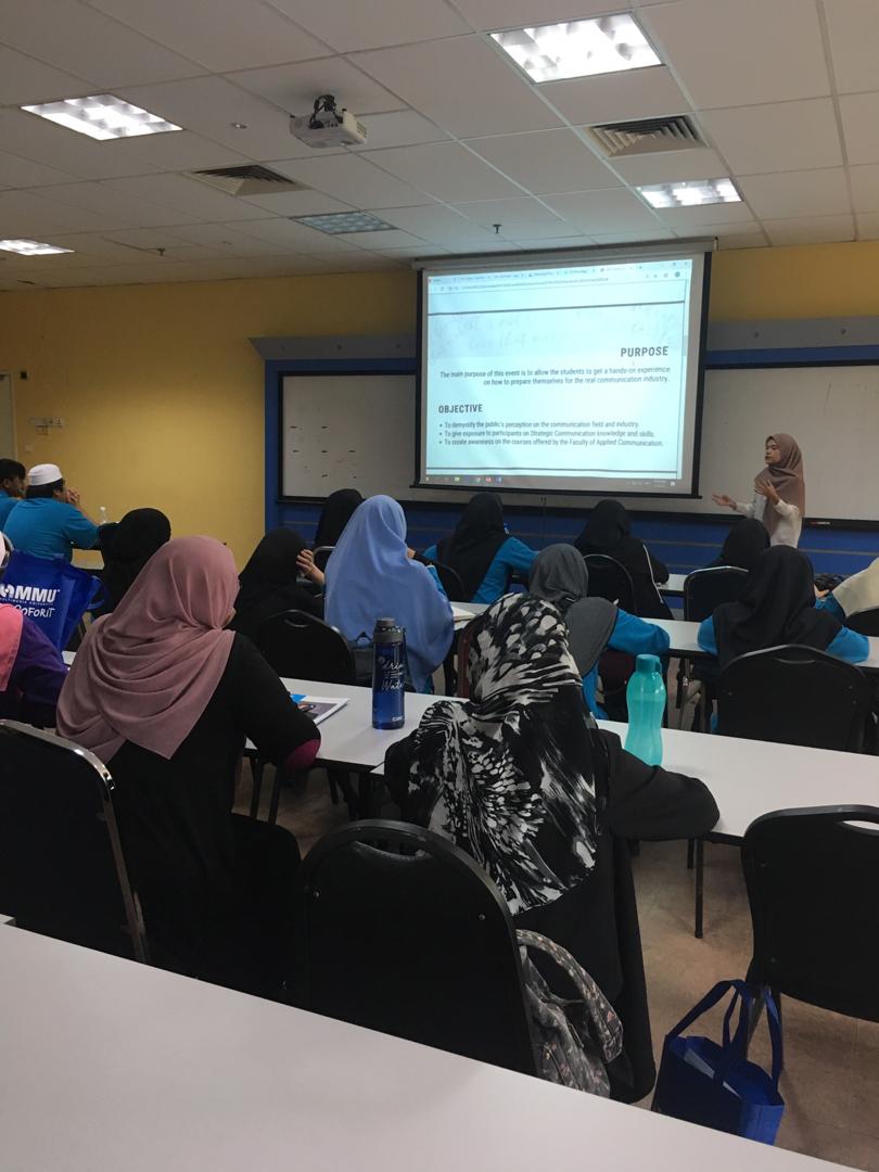 Next, was the sharing session given by the Bachelor of Strategic Communication students, Ms Alya Yusrina and Ms. Adibah Mahirah. They gave an insights on what the projects they had been working on and real life experience as students of Bachelor of Strategic Communication. The programme continued with real life communication games activities conducted by two FAC lecturers, Mr Julian and Mr. Willie Poh. The communication games had the students really active on their feet and fully engaged. The session had a positive outcomes on the students. It has helped them to understand how important it is to be an effective communicator and also to understand how by studying this course can help in realising this objective.