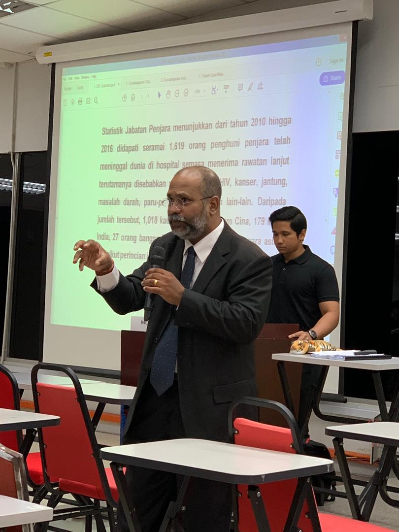 Around 300 students attended a talk by Mr. M.V. Nathan (practising lawyer and founder, EDICT-Elimination of Deaths in Custody) entitled “Death in Custody: Issues, Concerns and Way Forward” in Melaka recently. The talk was organised by the International Business (IB) unit of the Faculty of Business (FOB).