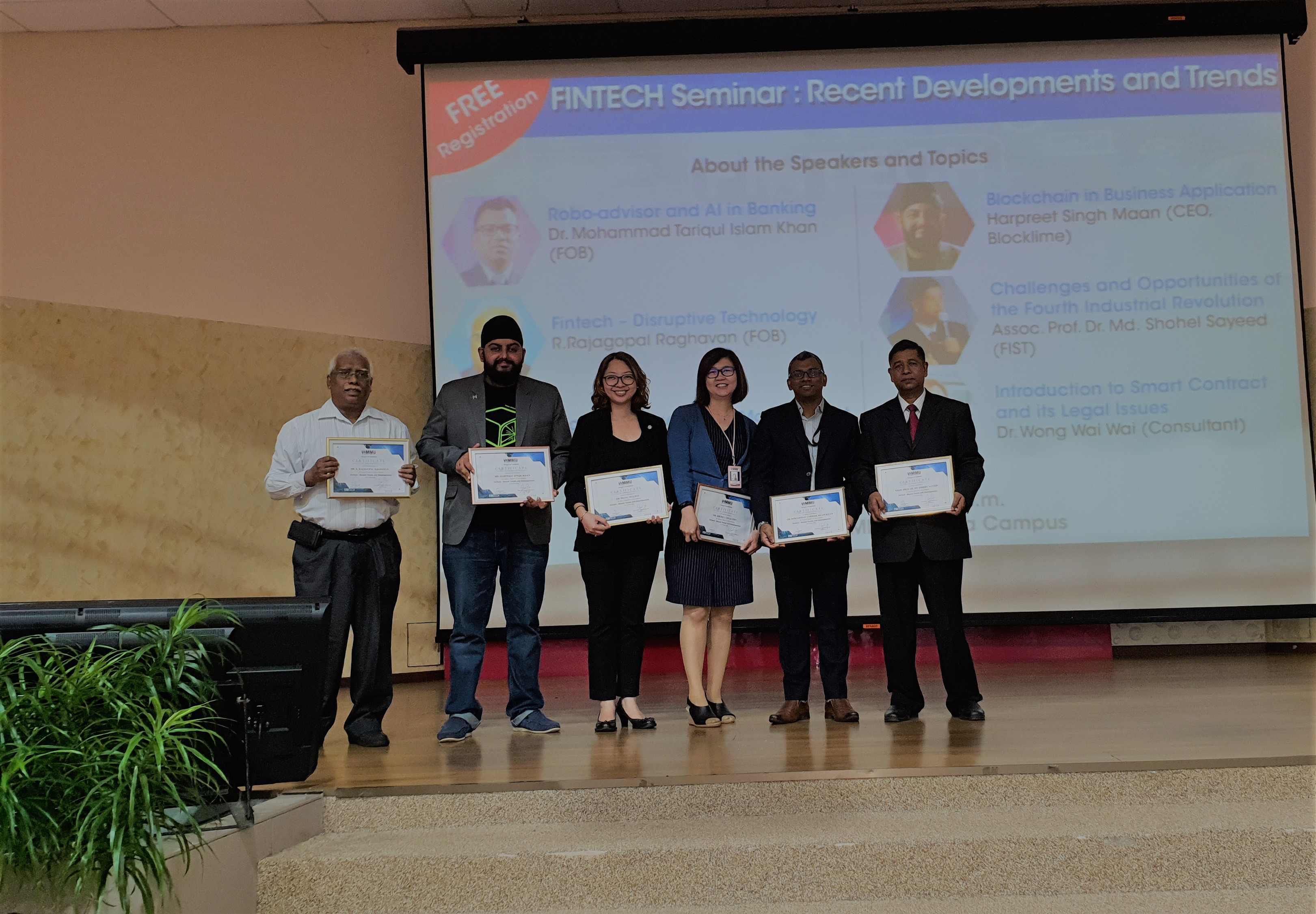 All in all, the students were exposed to in depth knowledge on FinTech’s recent developments and trends comprising various areas such as robo-advisor, Artificial Intelligence in banking, the scenario and growth of FinTech industry in Malaysia, industry 4.0 and next industrial revolution, big data, Blockchain and smart contracts. Assoc. Prof. Ts. Dr. Gerald Goh Guan Gan, the dean of FOB awarded the certificates to the attendees that passed the assessment test during the seminar.