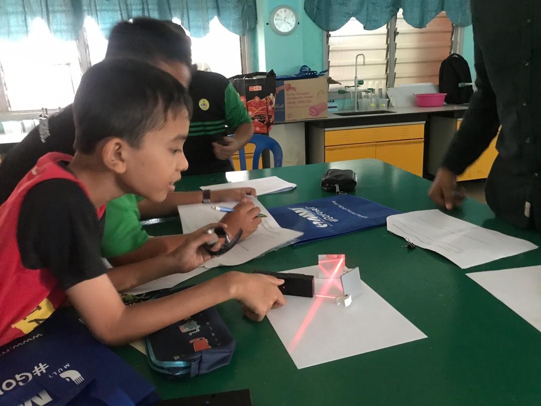 The programme aimed to cultivate students’ interest in science (especially the concept of light), to expose students to the fundamental concept of light, and to promote STEM (Science, Technology, Engineering and Mathematics) amongst the participants. The programme started with an interesting introduction to light by Dr. Azlida. Next, the students were guided through hands-on activities and performed experiments involving LEDs. These were designed to highlight the characteristics of light such as light travels in a straight line, light forms shadows, and the reflection and refraction of light.