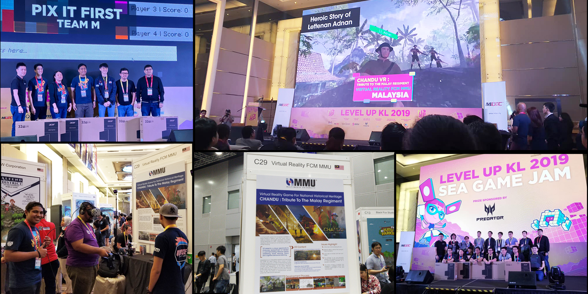 Fikri Suhaimi, our Virtual Reality student from the Faculty of Creative Multimedia (FCM) and his team members were announced as the grand prize winner at South East Asia (SEA) Game Jam Level Up 2019 in Kuala Lumpur recently. Organised by Level Up, the Malaysia Digital Economy Corporation (MDEC), the event gathered game developers from all over the SEA region to create games in a collaborative environment based on a theme within a 36-hour game jam. Fikri and his team members namely Alex Ong (Unity Developer), Nic Chin (Designer), Stevannus (KDU) and Felix Leong (Magnus Studio) received a 32 inch Acer Predator Monitor during the prize-giving ceremony.