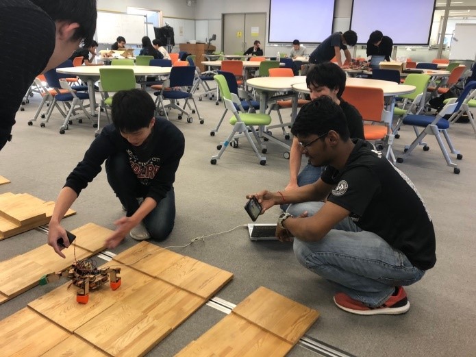 During the programme, the students were involved with several mechanical design and programming workshops, in which the FET students had the chance to work on together with the postgraduate students at Kyutech, innovating and improving their current competition projects such as tomato harvesting robot and fully automated pathway tracking Buggy. Hands-on experience such as Inventor modelling design, 3-D printing and Python programming were conducted throughout the programme. Furthermore, our students were also involved in the University’s Project-Based Learning (PBL) lectures, whereby the participants were divided into several groups together with the undergraduate students of Kyutech, to work on robotics project via Arduino programming.