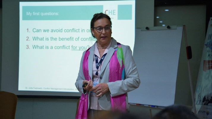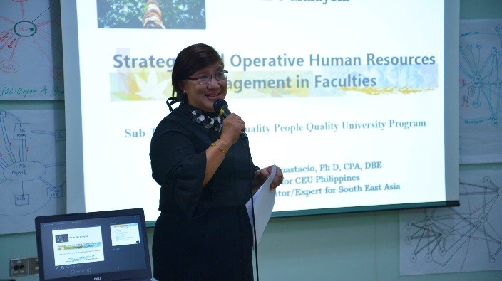 Professor Dr. Maria Flordeliza L. Anastacio, the Vice President and Dean of Studies of Centro Escolar University (CEU) Malolos, Philippines showcased her area of expertise regarding Financial and Human Resource Management. Drawing from her own experience in running a private institution, she showed the participants, CEU’s management strategies which rely on the concept of Quality People Quality University. A trainer and organiser of this programme, Professor Dr. Ong Duu Sheng, from MMU stressed that the programme is deemed successful if a positive change in the attitude and behaviour can be seen. Similarly, Professor Dr. Andanastuti Mucktar, Faculty of Engineering and Built Environment, UKM noticed the participants were more relax and trusted each other in this second part of the programme.