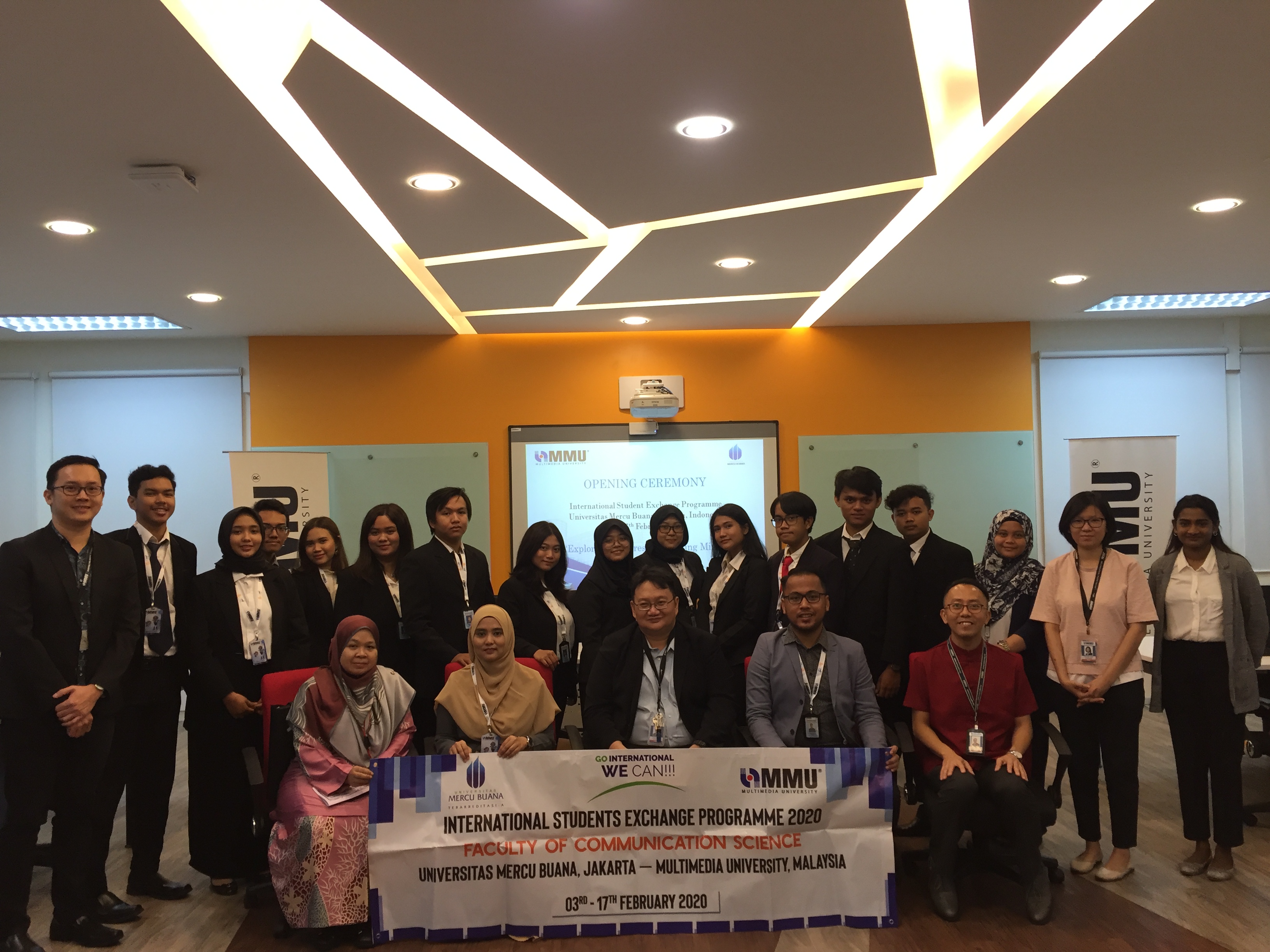 A group of 13 students and 3 visiting academics from the Universitas Mercu Buana (UMB), Jakarta, Indonesia participated in an exciting 15- day International Students Exchange Programme which was held from 3rd to 17th February 2020. Themed as “Exploring Cultures, Connecting Minds”, the exchange programme was officiated by Assoc. Prof. Ts. Dr. Gerald Goh Guan Gan who wished the students a fruitful exchange experience in Malaysia. Representing UMB was Miss Mardhiyyah, who hoped that the exchange programme would further strengthen the collaboration between MMU and UMB in the areas of academic, research and innovation, and student mobility programme. Also present were Dr. Tan Pei Kian, Dr. Siti Zakiah Melatu Samsi, Ms Nun Shwu Huey, Heads of Department, and fellow lecturers.