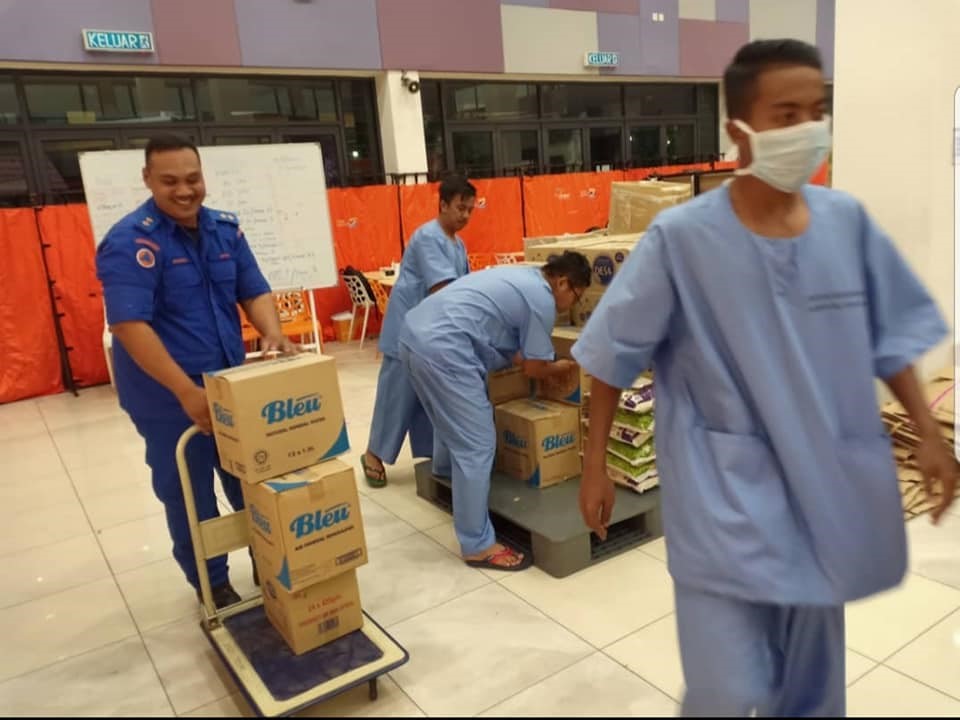 Student Affairs Division (STAD) through its University Community Transformation Centre (UCTC) initiated several efforts in helping out those affected by the Covid-19 situation on 24 March 2020. They supplied food to 150 volunteers of Angkatan Pertahanan Awam and 100 Patient under Investigation (PUI) at CREATE JKR Simpang Ampat, Melaka. This initiative was a joint effort between UCTC and Yayasan Food Bank Malaysia. Among items distributed were mineral water, biscuits, instant food, rice, cooking essential and others. AGIBS Group Sdn Bhd, a construction company helped in logistic arrangement from Yayasan Food Bank’s warehouse in Kajang.