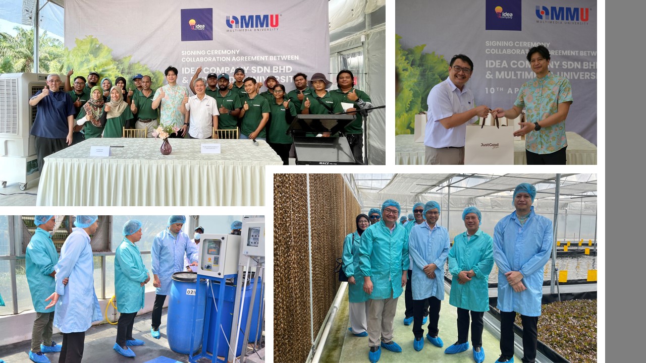 Multimedia University (MMU) and Idea Company Sdn. Bhd. (IDEACO) continue to further strengthen the link via a collaboration agreement signing ceremony on 10 April 2023 at the JustGood Roots Smart Farm, Rawang, Selangor. The agreement was inked by MMU President, Prof. Dato’ Dr. Mazliham Mohd Su’ud and Managing Director of IDEACO, Mr. Zachary Aman.