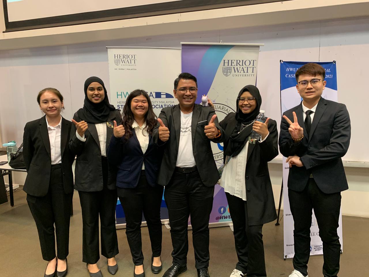 A group of students consisting of Celestie Liew Huey Yin from the Faculty of Management (FOM), Lee Wen Xin, Tay Chang Jun, Nurfirzana Mohd Izat, and Nurul Hasnah Ibrahim from the Faculty of Business (FOB) qualified for the grand final round of Heriot-Watt University Malaysia Society of Actuarial Science (HWUMSAS) Case Competition 2023. The final round was held at Heriot-Watt University Malaysia on 29 March 2023.