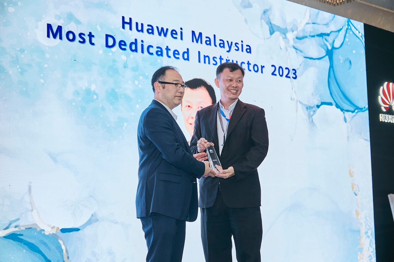 Let us extend our heartiest congratulations to Assoc. Prof. Dr. Ng Kok Why, the Deputy Dean of the Faculty of Computing and Informatics (FCI) for clinching the Most Dedicated Instructor Award at the recent Huawei Malaysia Teachers Summit 2023. The award was presented by Mr. Zhang Fupeng, VP of Asia Pacific Region ICT Strategy and Marketing in Mandarin Hotel Kuala Lumpur in November 2023.