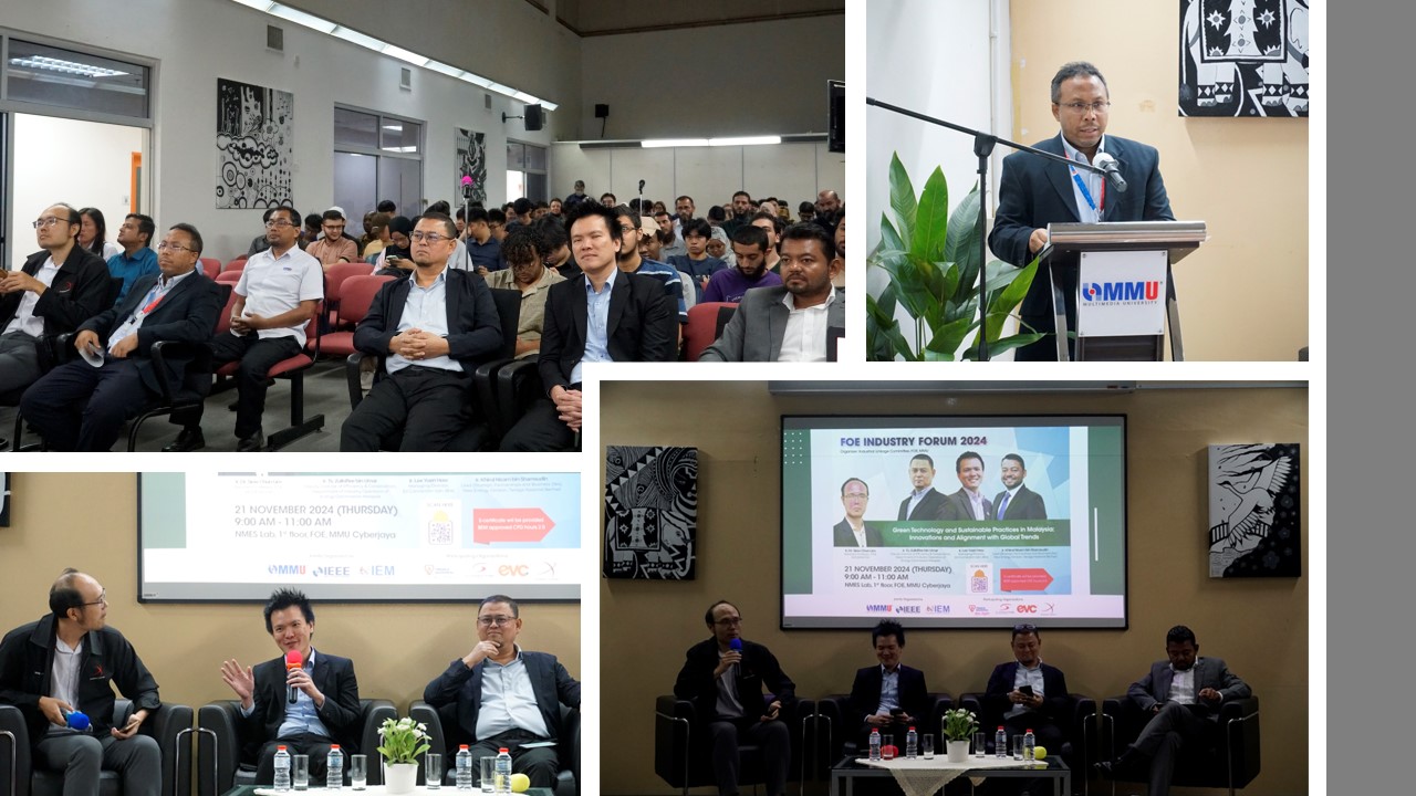 The Faculty of Engineering (FOE) through its Industrial Linkage Committee organised the Industry Forum 2024 on 21 November 2024 at the Cyberjaya campus. With the theme “Green Technology and Sustainable Practices in Malaysia: Innovations and Alignment with Global Trends,” the event brought together over 140 participants for dynamic discussions on Malaysia’s sustainable future, exploring pathways to align local efforts with global sustainability objectives. The forum kicked off with a welcoming address by Prof. Ir. Dr. Hezerul Abdul Karim, Deputy Dean of FOE.