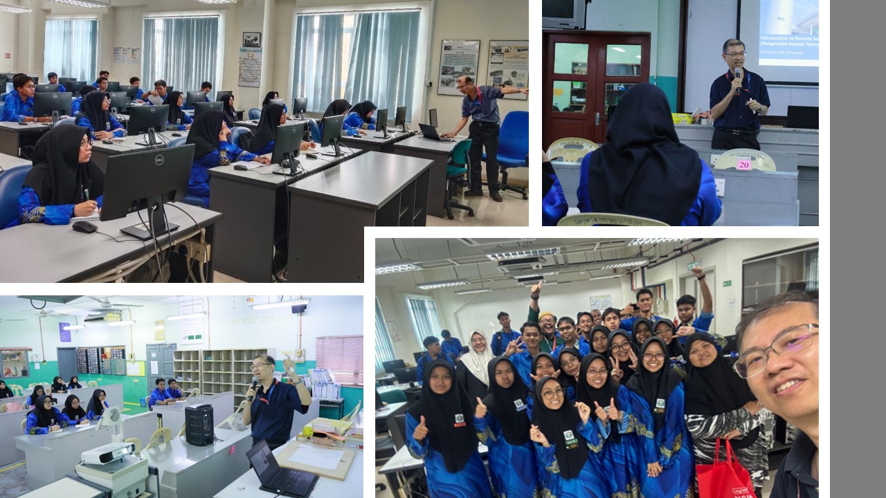 The first activity was a talk entitled “Introduction to Remote Sensing Technology,” held at SM Teknik Melaka. In this session, Prof. Ir. Dr. Chan introduced students to the exciting world of remote sensing, explaining its core principles and its wide-ranging applications in fields such as environmental monitoring, agriculture, and urban planning. His clear and engaging presentation made complex ideas easier to understand and encouraged students to take a greater interest in the topic.