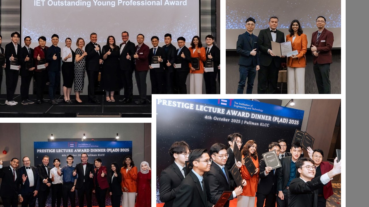 Let us extend our heartiest congratulations to Ms. Kaviratna Narayansamy, our student from the Faculty of Engineering and Technology (FET) for receiving the IET Outstanding Young Professional Award during the Prestige Lecture and Award Dinner (PLAD) 2025, at Pullman Kuala Lumpur City Centre on 4 October 2025.
