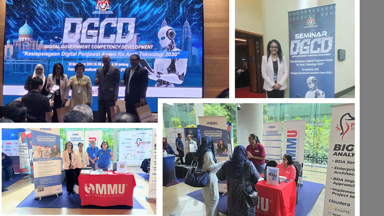In conjunction with the DGCD Seminar and the Fourth Industrial Revolution (IR4.0) Seminar on 1–2 October 2025, MMU also took part in the event through an exhibition booth at PICC. The booth, managed by FOM, the Postgraduate Centre (PGC), and the SRAD team, served as a platform to showcase and promote MMU’s postgraduate programmes. The exhibition provided an excellent avenue to highlight MMU’s postgraduate expertise while fostering collaboration and knowledge exchange in support of Malaysia’s digital governance agenda.