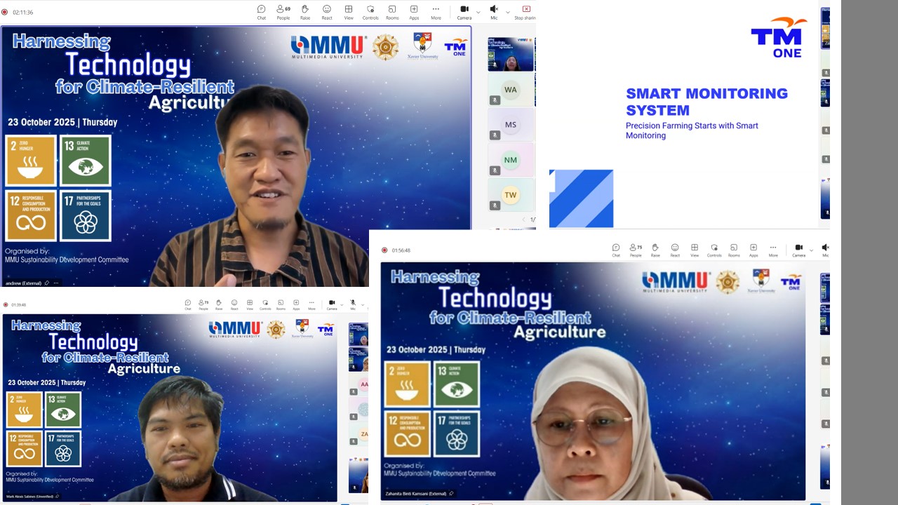 On 23 October 2025, MMU hosted an international webinar titled. “Harnessing Technology for Climate-Resilient Agriculture”, focused on how digital technologies, data-driven farming, and sustainable innovations can help build resilience, protect ecosystems, and ensure food security for future generations. Three invited speakers underscored the importance of context-appropriate innovation in designing digital tools that match local infrastructure, traditional ecological knowledge, and farming practices to improve productivity, information access, and sustainable agriculture, rather than widening the digital divide.