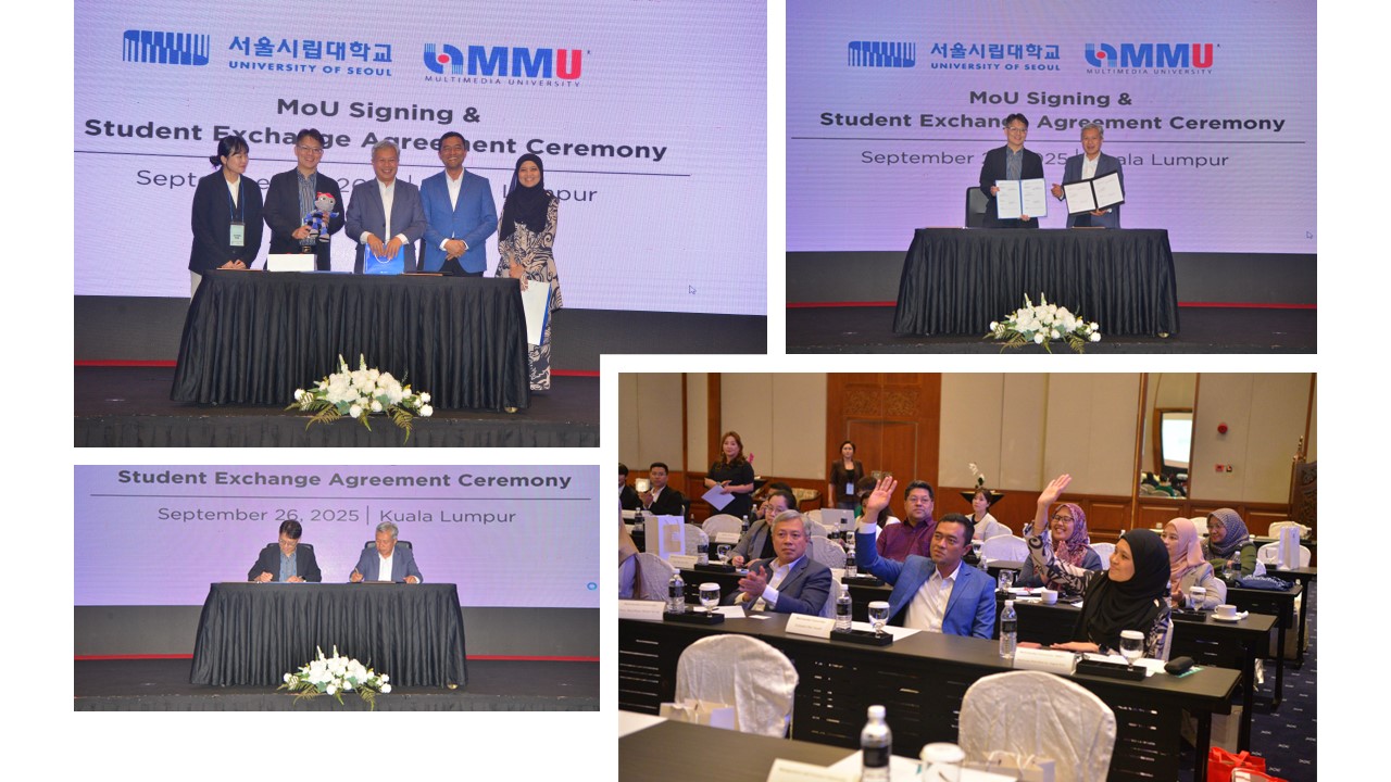 As part of its commitment to expanding global partnerships, MMU signed a Memorandum of Understanding (MoU) and a Student Exchange Agreement (SEA) with several international institutions. On 26 September 2025, MMU formalised the agreements with the University of Seoul in Kuala Lumpur, signed by Prof. Dato’ Dr. Mazliham Mohd Su’ud, President of MMU, and Prof. Dr. Minchan Pyo, Vice President for International Affairs of the University of Seoul.