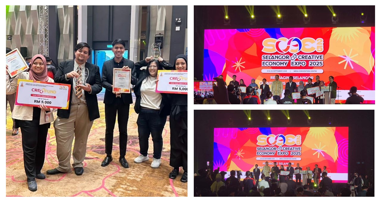 Let us extend our heartiest congratulations to two outstanding teams from MMU for their remarkable achievement at the CRE8Fund Competition, where they each secured RM5,000 in funding along with exclusive support and mentorship from Selangor Creative Entrepreneurs. The award ceremony took place during the Selangor Creative Economy Expo (SCEE) 2025, held at MBSA Convention Centre on 24 September 2025.