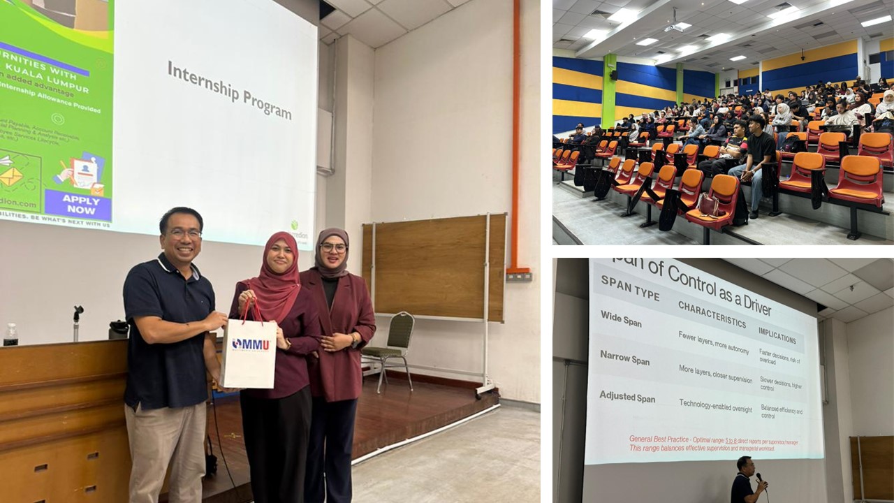 The session was delivered by Mr. Zul Emran Yaakob, Director at Ingredion, who shared his extensive experience on “Organisational Change and Innovation Management”. The speaker provided students with practical perspectives on how organisations navigate change, manage structure, and maintain efficiency. He highlighted key concepts such as span of control, organisational design, and dynamics within multinational corporations and shared services environments.