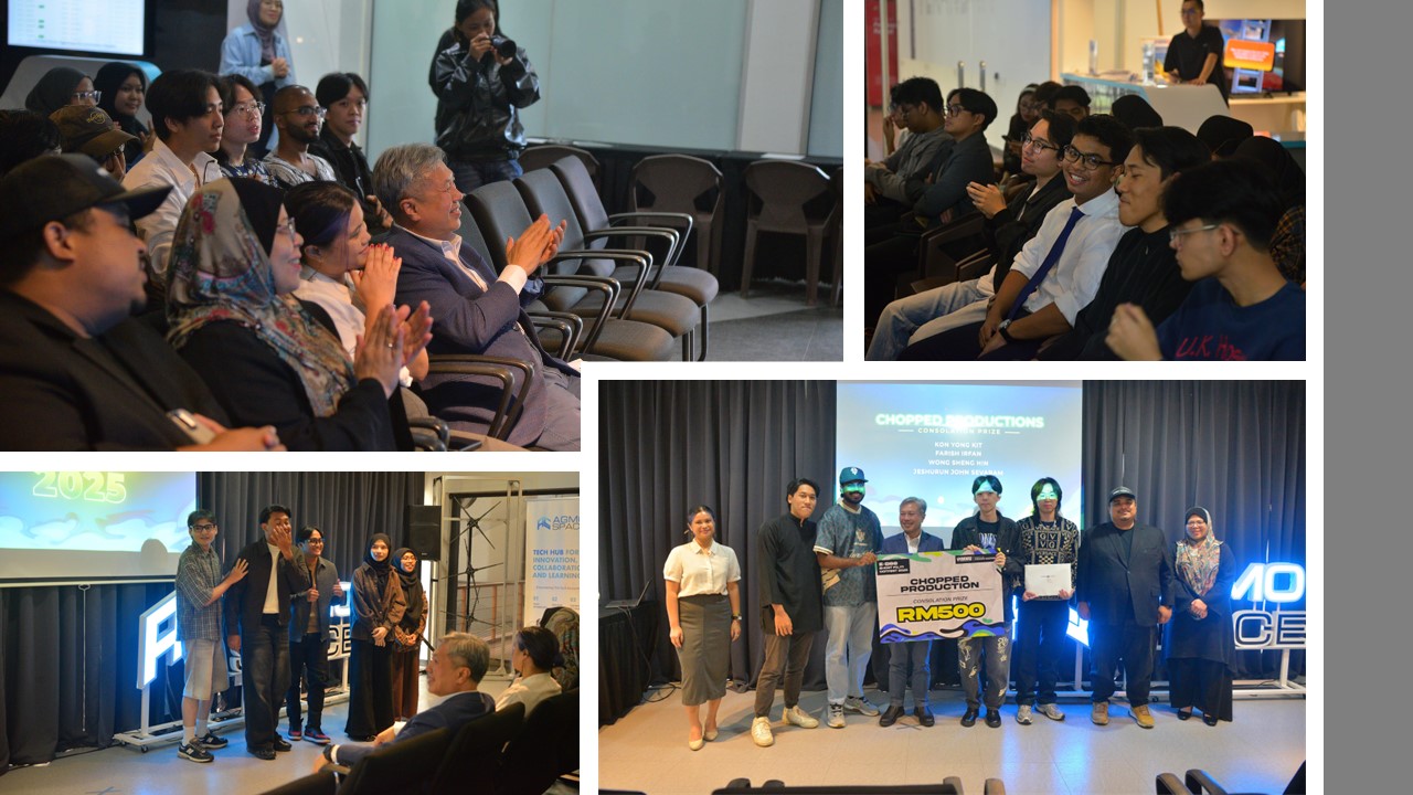 The event concluded with the announcement of the winners. Cabinet secured the Grand Prize of RM3000, followed by Hihang Hoheng receiving the Special Mention Award of RM1000, and Chopped Production earning the RM500 consolation prize. The prizes were presented by Prof. Dato’ Dr. Mazliham, together with Ms. Nadia Mahmud, Dean of FCM; Ts. Shahfeeq Jibin, Dean of FCA; and other MMU officers.