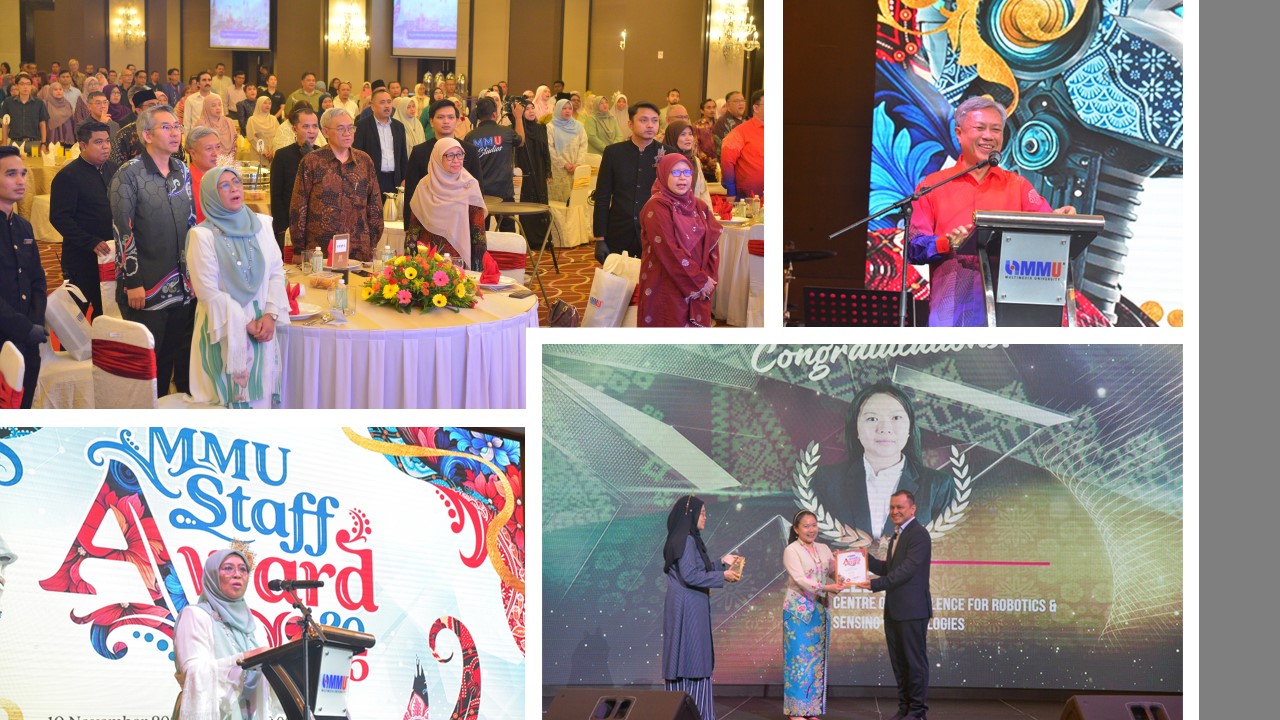 The ceremony, organised by the Human Capital Management (HCM) team, was held at the Hatten Hotel, Melaka, and attended by Prof. Dato’ Dr. Mazliham Mohd Su’ud, MMU President & CEO, senior management, deans, directors, and staff from both Melaka and Cyberjaya campuses.