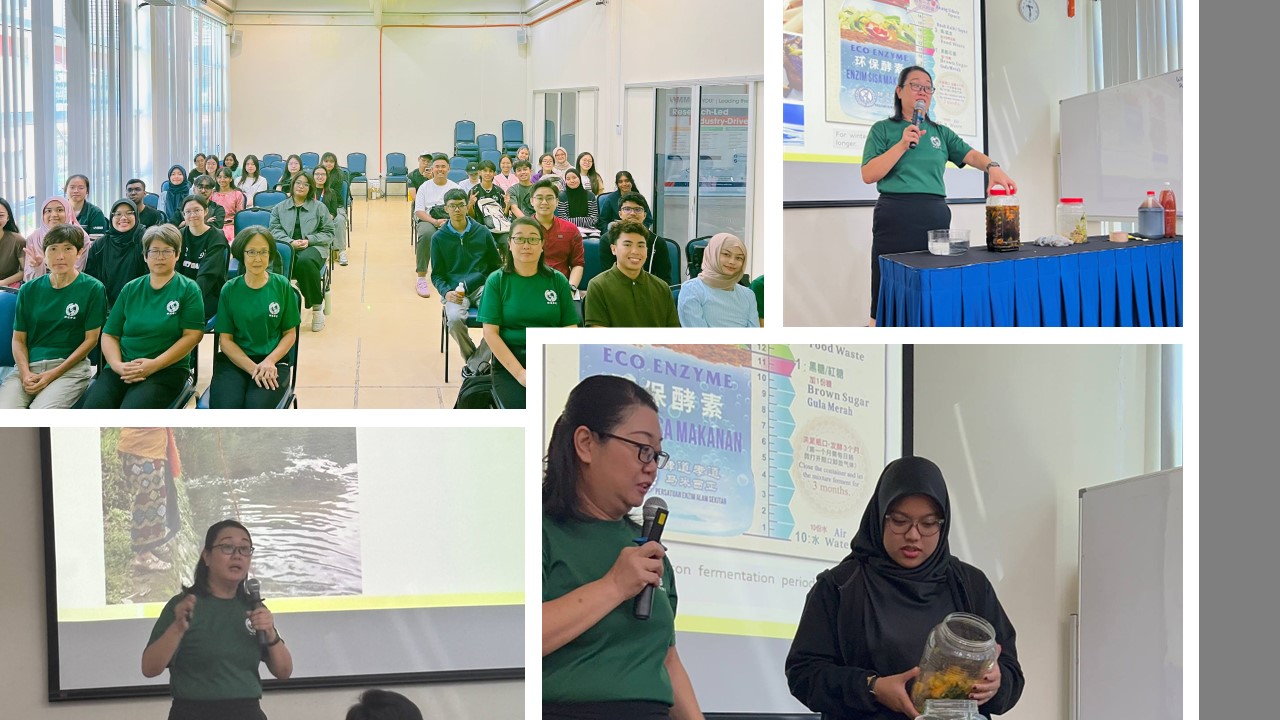 The session featured a hands-on demonstration conducted by Ms. Helen and her colleagues, who showed how to produce eco enzyme using simple household materials, which include food waste (e.g., vegetable and fruit peels/rind), brown/molasses sugar, and water. Students had the opportunity to observe and participate in the preparation process, learn practical applications, and understand how small, sustainable actions can collectively contribute to a healthier ecosystem.