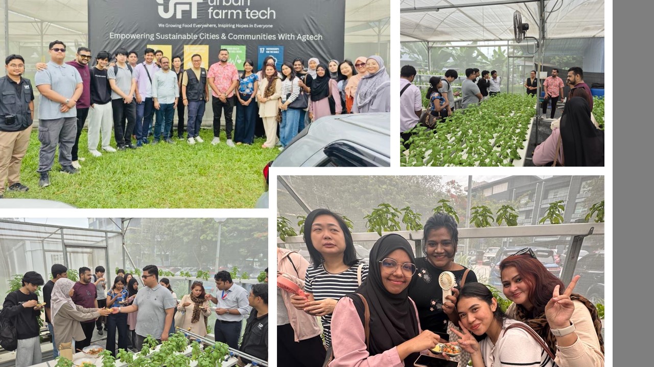 A group of Master of Business Administration (MBA) students from the Faculty of Management (FOM) partook in an educational visit to the UFT Urban Community Farm, a strategic partner of the Malaysia Digital Economy Corporation (MDEC) on 20 January 2026 at Rekascape, Cyberjaya. Coordinated and organised by Assoc. Prof. Ts. Dr. Lilian Anthonysamy, the visit aimed at exposing students to sustainable agriculture practices and innovative urban farming technologies.