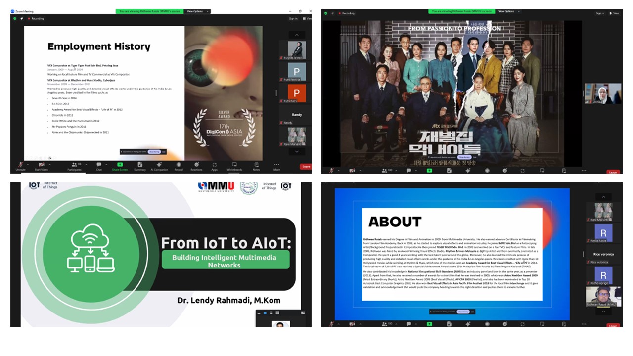 The webinar featured two distinguished speakers. Dr. Lendy Rahmadi, from Universitas Lembah Dempo delivered a presentation titled “From IoT to AIoT: Building Intelligent Multimedia Networks,” where he shared insights on the evolution of Internet of Things (IoT) technologies towards Artificial Intelligence of Things (AIoT) and their roles in developing smarter multimedia systems in the future of digital network.