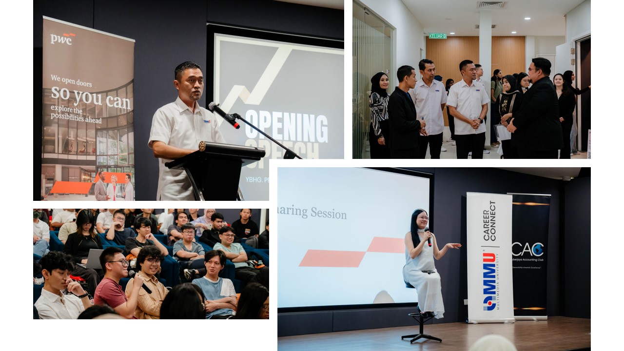 A programme titled “Career Insights & Experience Series” by MMU PwC Trust Ambassadors with the support of MMU Career Connect, Faculty of Management (FOM), Faculty of Business (FOB), Cyberjaya Accounting Club and Career Express was successfully conducted on 7 April 2026 at TMDA, Cyberjaya campus.