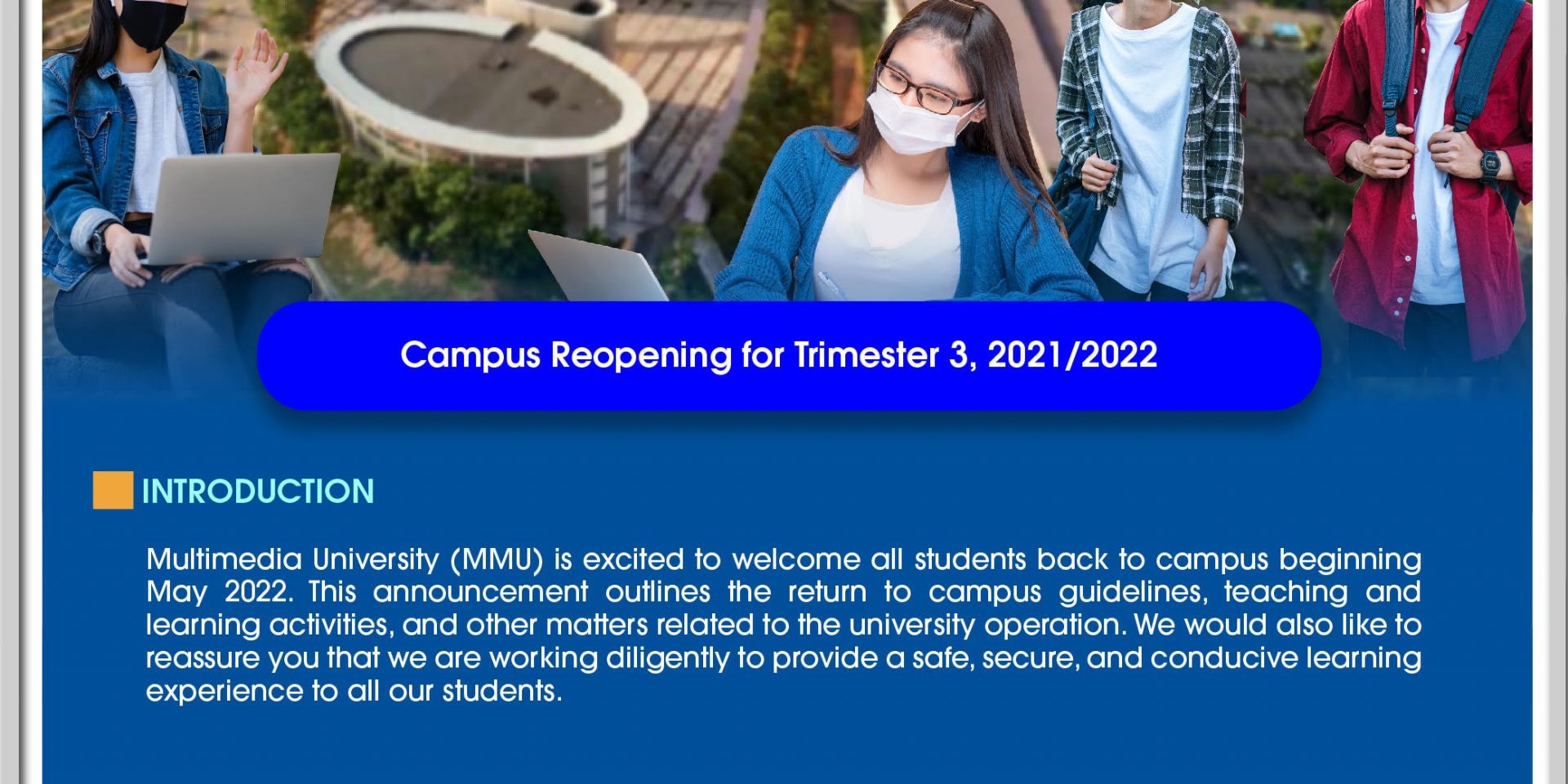 We would like to share CampusReboot Plan Announcement No.4 which is related to the academic operations for Trimester 3, 2021/2022 and guidelines for return to campus.