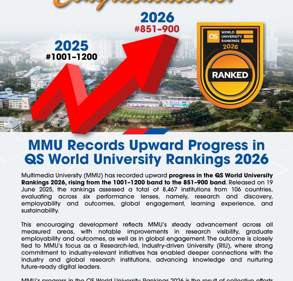 Congratulations to MMU on Its Upward Progress in The QS World University Rankings 2026! 20 June 2025 News