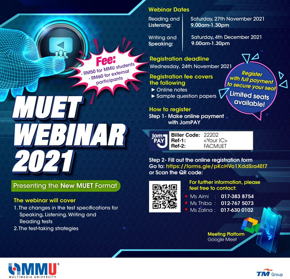 You are encouraged to register for the webinar as MUET is one of the requirements for graduation.