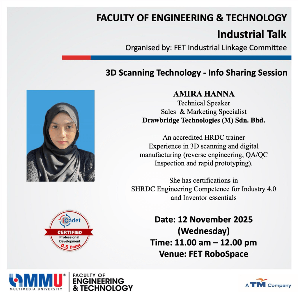 Industrial news Industrial Talk on 3D Scanning Technology Read more Invitation to Industrial Talks in Conjunction with IAP Visit Read more Keysight Technologies: Exploring career opportunities and on-site interview Read more James Dyson Award Info Session Read more Virtual Career Talk: Power Up Your Career: Insights from Industry Experts Read more Guest lecture talk on “Manufacturing Risk Management Under ISO9001:2015″ Read more Petronas Adjunct Lectures (Jan 2025) Read more Industrial Talk: Factors to Succeed in Sustainable Product Read more Petronas Adjunct Lectures (September 2024) Read more Industrial Talk: Heating, Ventilation, and Air Conditioning (HVAC) for Energy Efficient Buildings Read more FET Industry Forum on Fostering Collaboration and Innovation: Bridging Academia with Industry Excellence Read more James Dyson Foundation Industry Sharing: Design Engineering the Dyson Way Read more Industrial Talk: Enhancing Mechanical Engineering Digital Tools for 3D Design, Controls, and Energy Optimization in Buildings Read more Virtual Industrial Talk: Semiconductor Industry Career Path Read more Publishing Talk Read more MECON23 industry dialogue Read more Virtual IAP sharing session Read more Virtual industrial talk: Simulations for Building and Structures by RF Station Sdn Bhd Read more Hybrid IMechE Talk: IMechE Memberships Introduction and CEng Application Read more FET Industry Forum on Engaging the collaboration between University-Industry: What is the successful model? Read more Petronas Talk Series: Pipeline of The Future – PETRONAS Techno-Digital Solutions for Safe and Reliable Pipeline Operation Read more Petronas Talk series 3: The relevance of 3D model review and laser scanning in O&G Read more Petronas Talk series 2: Introduction of Pipeline Engineering Read more Petronas Talk series 1: Industrial Machinery Vibration Analysis Read more Industrial Talk with BPE Synergy Engineering Sdn Bhd Read more Job Vacancies at Daikin Malaysia Read more Industrial forum: Transforming Engineering: Opportunities And Challenges To Meet Sustainable Engineering Goals Read more Young Engineer Program (YEP) from Greatech Read more Job Vacancies from Kian Joo Can Factory Berhad Read more Job Vacancies from Wistron Technology (Malaysia) Sdn. Bhd Read more Job vacancies from Greatech Technology Berhad Read more Job vacancies from Wuhan FiberHome International (M) Sdn. Bhd Read more Campus program by Keysight Technologies Read more Internship recruitment from Logistics Solutions Integrators company Read more NTT MSC Cyberjaya is hiring for Service Desk Analyst (Cantonese Speaker) role. Read more goSMAC Software Engineering Internship Read more XTS Technologies Sdn. Bhd. – Job Advertisement Read more Greatech: Vacancies under YEP and Job Description Read more Innovalues Precision Sdn. Bhd. – Job Advertisement Read more Panasonic Appliances Air-Conditioning R&D Malaysia Sdn. Bhd. – Job Advertisement Read more Shin-Etsu Handotai (S.E.H.) Malaysia – Job Advertisement Read more Job vacancy in Sony Bangi Read more Keysight Technologies (Malaysia) – Internship and Job Advertisement Read more Recruitment of Inchz IoT Sdn Bhd Read more Dynacast (Melaka) Sdn. Bhd – Job Advertisement Read more TAS TECNIC ENGINEERING – Internship (Mechanical Engineering) Read more Greatech – Job Advertisement Read more STRATUS AUTOMATION – Job Advertisement 2 Read more STRATUS AUTOMATION – Job Advertisement 1 Read more Western Digital Openings – Intern & Fresh Grad position Read more Job vacancies for Mechanical Fresh Graduate in Interstella Technology (M) Sdn Bhd Read more Panasonic R&D Engineer Job Opening information with MMU’s Fresh Engineering Graduates / Alumni Read more ZTE scholarship 2020 for electronics engineering students (delta year) Read more Job vacancy in Symmid Corporation Sdn. Bhd Read more Load more