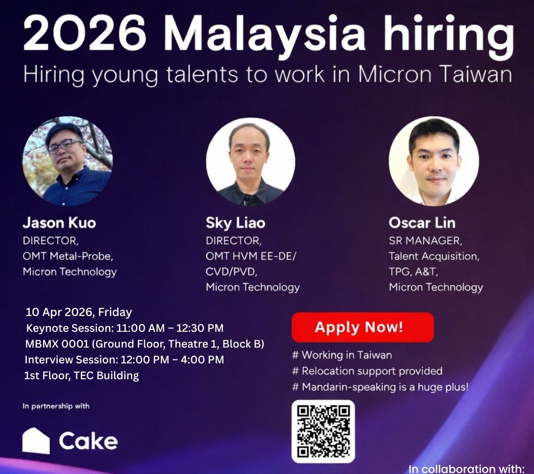 Exciting opportunity for engineering students, fresh graduates, and MMU Engineering alumni to explore global career opportunities with Micron Taiwan!