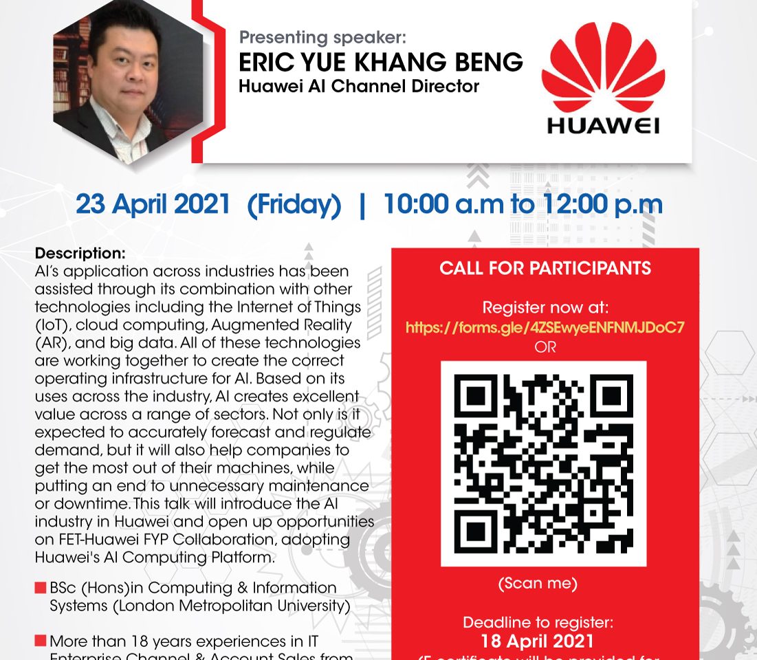 Virtual Technical Talk on FET-Huawei FYP Collaboration: Huawei’s AI Computing Platform – 23 April 2021 (10 am – 12 pm)