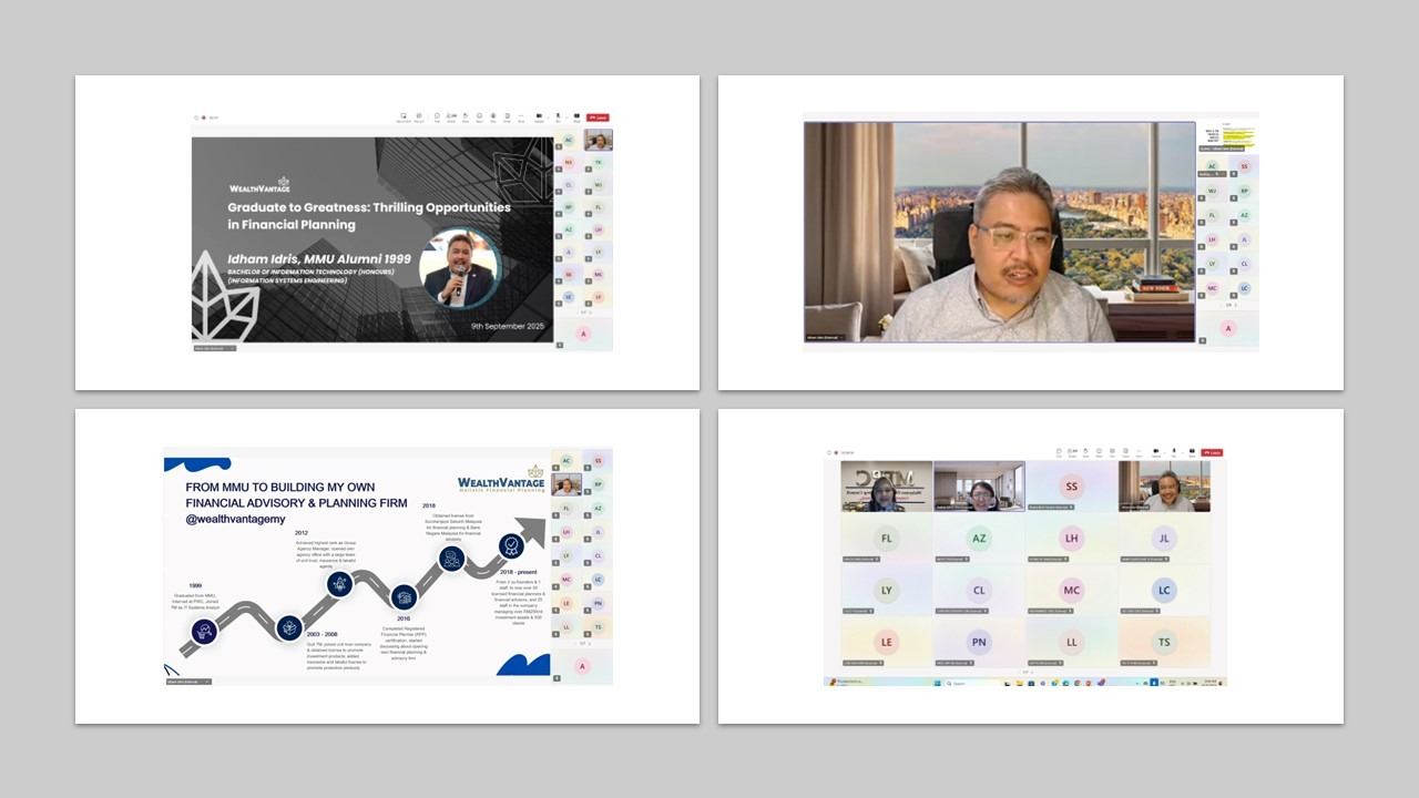 Earlier, on 10 September, over 260 students and academics attended the webinar “Graduate to Greatness: Unlock Thrilling Opportunities in Financial Planning”, organised in collaboration with the Malaysian Financial Planning Council (MFPC). The speaker was Mr. Idham Idris, Co-Founder of Wealth Vantage Advisory, Licensed Financial Planner, and proud Permata Dunia (Class of 1999). He shared career insights drawn from his early days with Telekom Malaysia to his extensive professional experience, inspiring students to explore opportunities in financial planning.